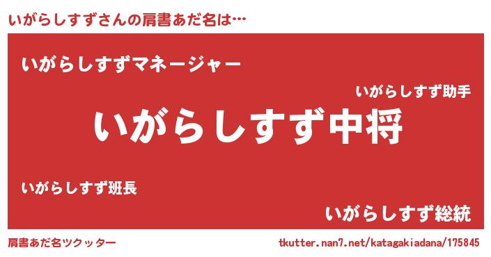 | 男性向けラノベタイトル風あだ名 | 『いがらしすず~年齢イコール彼女いない歴の魔法使い~』 |