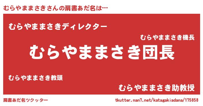 | ポケモン風あだ名 | 『ヒムラヤママサキ』『ムラゴンZ』 |