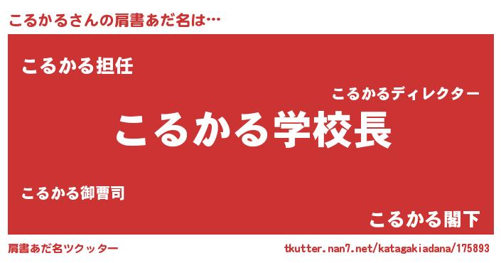 | ヘコむあだ名 | 『こるかる(爆)』『こるもー』『牛乳』 |