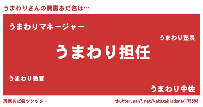 | 意味不明あだ名 | 『永久保存うまわり』『自称うまわり』 |