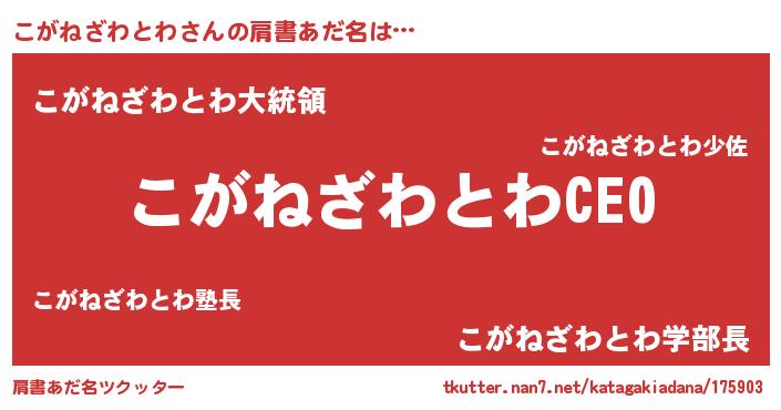 | 男性向けラノベタイトル風あだ名 | 『こがねざわとわの憂鬱』 |
