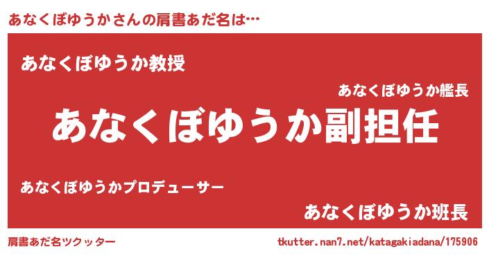 | 男性向けラノベタイトル風あだ名 | 『あなくぼゆうかという概念が存在しない退屈な世界 』 |