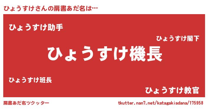 | 男性向けラノベタイトル風あだ名 | 『うちのひょうすけが世界を掌握している!』 |