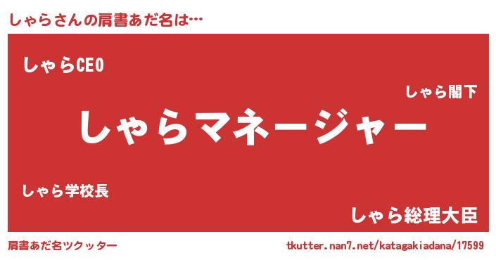 | ヒーロー風カッコイイあだ名 | 『スーパーシャラ』『ウルトラしゃらマン』 |