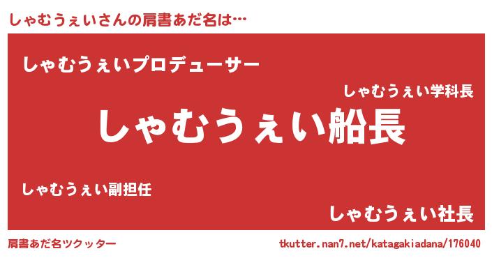 | ヘコむあだ名 | 『しゃふぇ~』『しゃむうぇい(遠い目)』 |