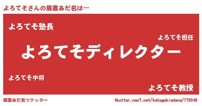 | 男性向けラノベタイトル風あだ名 | 『よろてそに滅ぼされるだけの簡単なお仕事です』 |