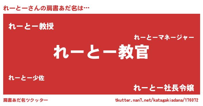 | 男性向けラノベタイトル風あだ名 | 『この素晴らしい世界にれーとーを!』 |