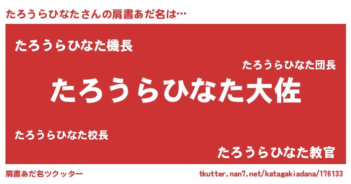 | ヘコむあだ名 | 『たろを』『たろうらひなた(震え声)』 |