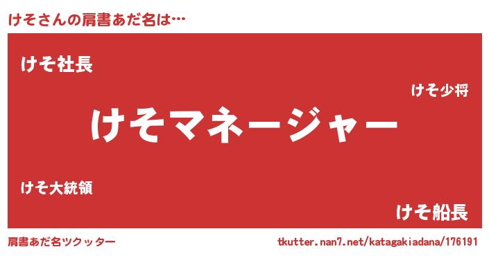 | 男性向けラノベタイトル風あだ名 | 『はたらくけそさま!』『ケソスレイヤー』 |