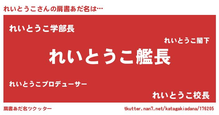 | 男性向けラノベタイトル風あだ名 | 『うちのれいとうこが世界を掌握している!』 |