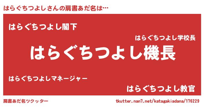 | 意味不明あだ名 | 『自称はらぐちつよし』 |