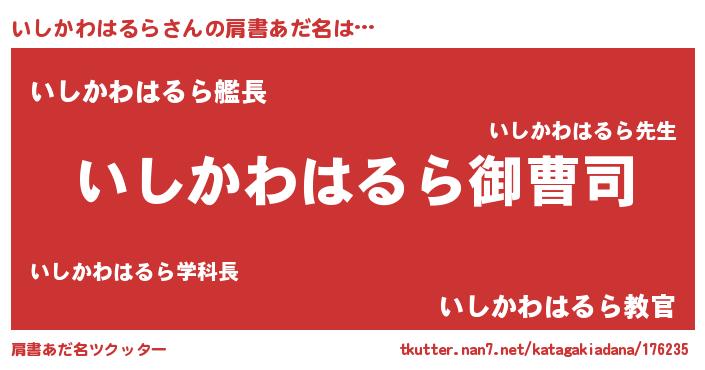| 男性向けラノベタイトル風あだ名 | 『イシカワハルラアートオンライン』 |