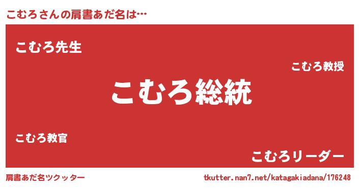 | 意味不明あだ名 | 『自称こむろ』『永久保存こむろ』 |