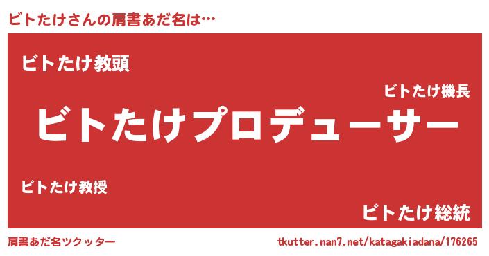 | 意味不明あだ名 | 『永久保存ビトたけ』『自称ビトたけ』 |