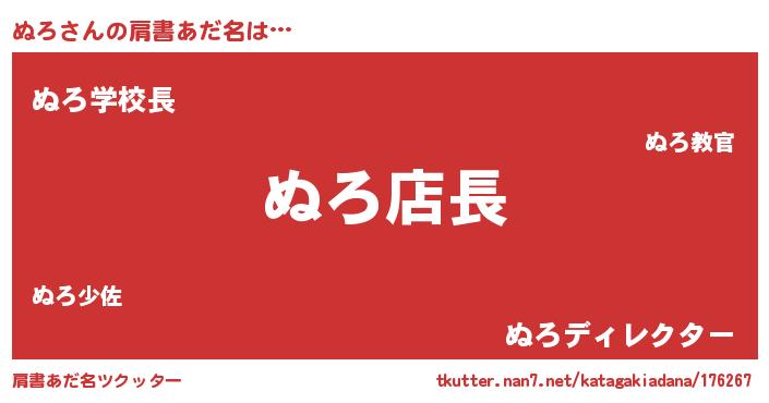 | 男性向けラノベタイトル風あだ名 | 『ぬろの憂鬱』『ヌロスレイヤー』 |