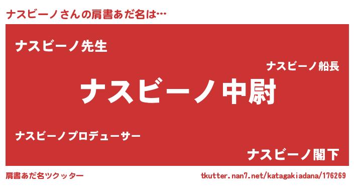 | 男性向けラノベタイトル風あだ名 | 『ナスビーノスレイヤー』 |