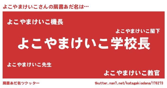 | 女子向けラノベタイトル風あだ名 | 『よこやまけいこ恋絵巻』 |