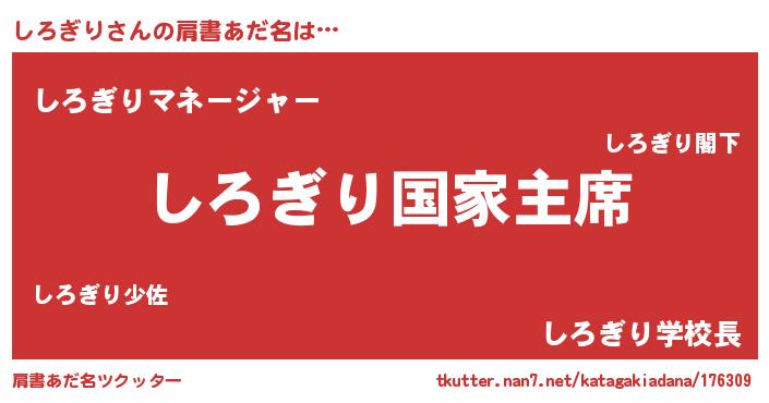 | ヒーロー風カッコイイあだ名 | 『ウルトラしろぎりマン』『仮面シロダー』 |