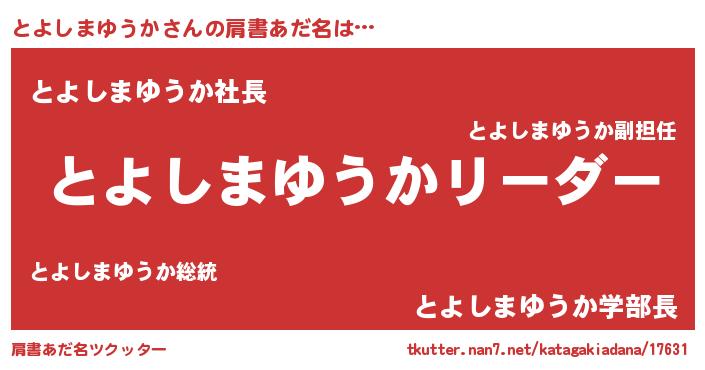 | 男性向けラノベタイトル風あだ名 | 『ダンジョンにとよしまゆうかを求めるのは間違っているだろうか』 |