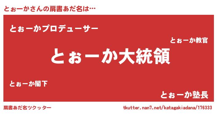 | 意味不明あだ名 | 『とぉーかフォーエバー』『自称とぉーか』 |