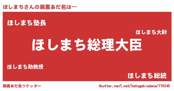 | ポケモン風あだ名 | 『ホシマダネ』『ヒホシマチ』 |