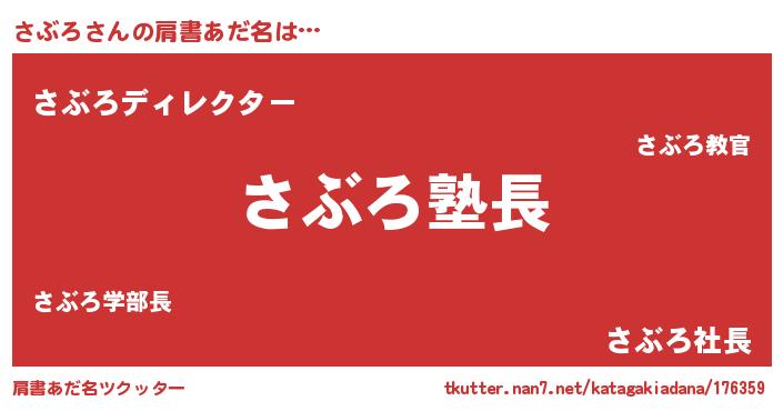 | 男性向けラノベタイトル風あだ名 | 『ダンジョンにさぶろを求めるのは間違っているだろうか』 |