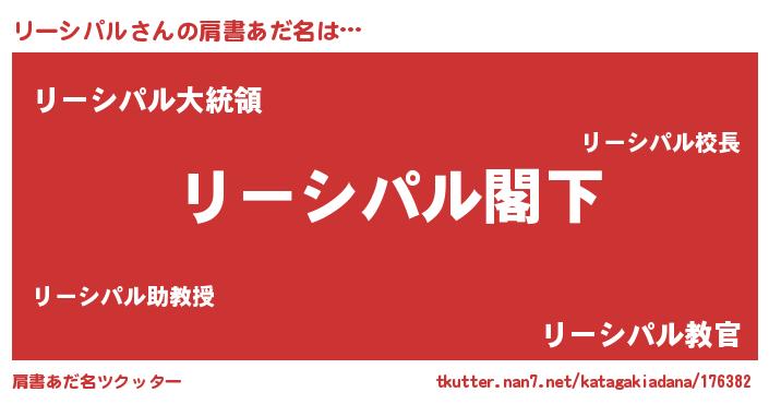 | 意味不明あだ名 | 『自称リーシパル』『永久保存リーシパル』 |