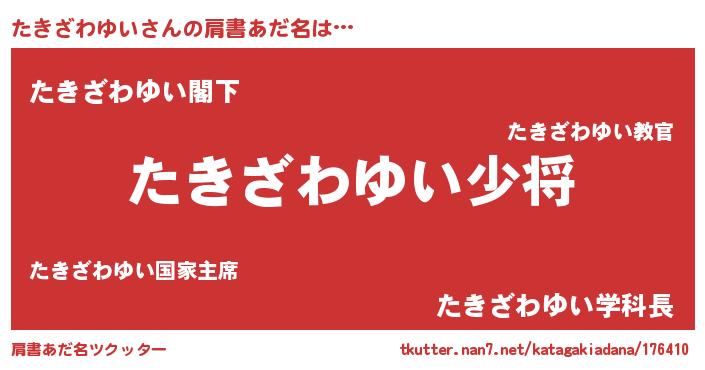 | ヒーロー風カッコイイあだ名 | 『最強戦士タキザワユイ』『仮面タキダー』 |