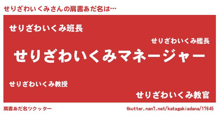 | 男性向けラノベタイトル風あだ名 | 『はたらくせりざわいくみさま!』 |
