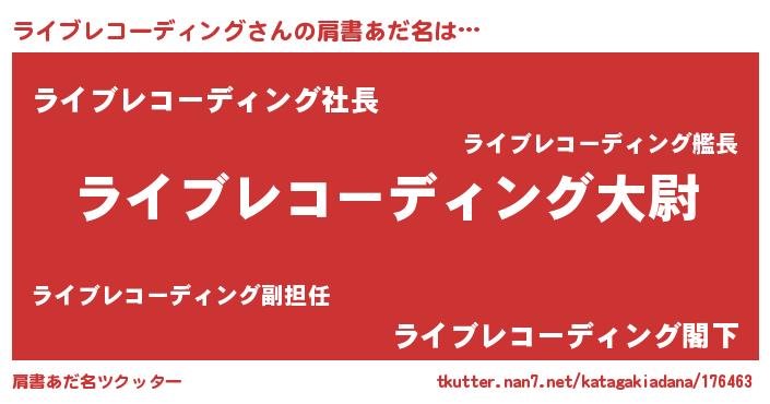 | 男性向けラノベタイトル風あだ名 | 『ライブレコーディングスレイヤー』 |