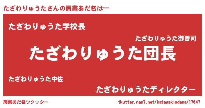 | 男性向けラノベタイトル風あだ名 | 『たざわりゅうたの嫁は女の子じゃないと思った?』 |