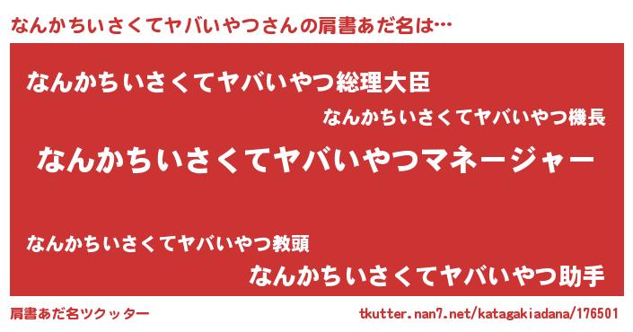 | ファンタジー風あだ名 | 『エターナルナンカチイサクテヤバイヤツー』 |
