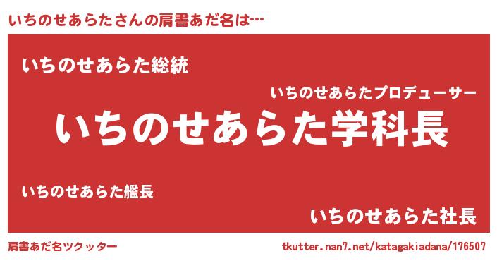 | 女子向けラノベタイトル風あだ名 | 『いちのせあらた恋絵巻』 |