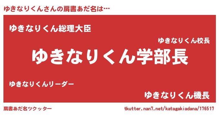 | ポケモン風あだ名 | 『ユックウザ』『ユキナダネ』 |