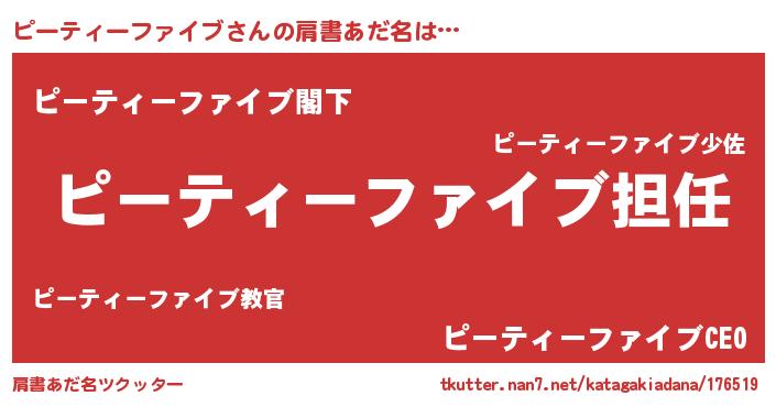 | 意味不明あだ名 | 『永久保存ピーティーファイブ』 |
