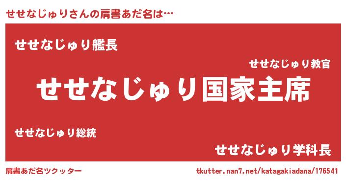 | 男性向けラノベタイトル風あだ名 | 『やはりせせなじゅりの青春ラブコメはまちがっている 』 |