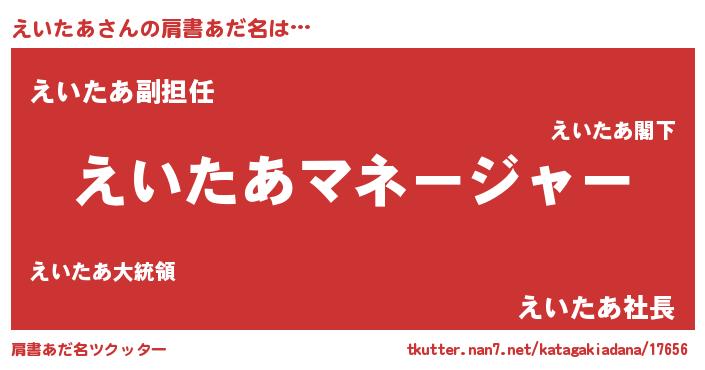 | 男性向けラノベタイトル風あだ名 | 『えいたあに滅ぼされるだけの簡単なお仕事です』 |