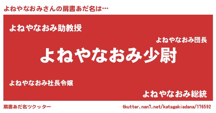 | 男性向けラノベタイトル風あだ名 | 『転生したらよねやなおみだった件』 |