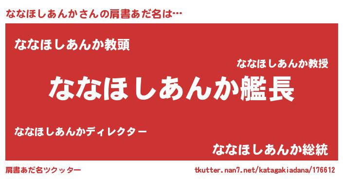| 意味不明あだ名 | 『永久保存ななほしあんか』 |