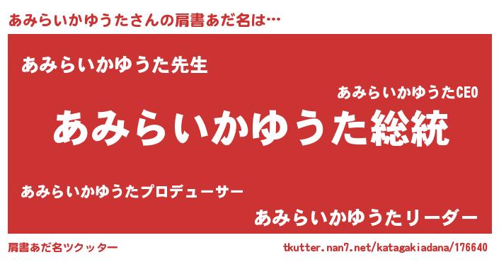 | 意味不明あだ名 | 『自称あみらいかゆうた』 |