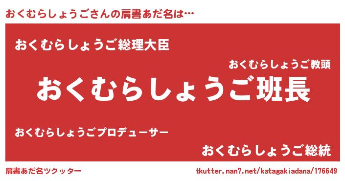 | 意味不明あだ名 | 『とにかく怪しいおくむらしょうご』 |