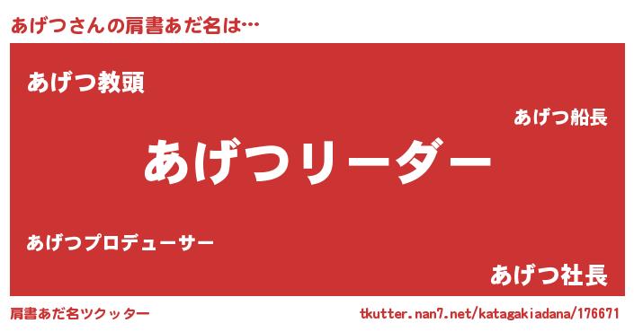 | ヘコむあだ名 | 『あげぷりん』『あげつ(笑)』 |
