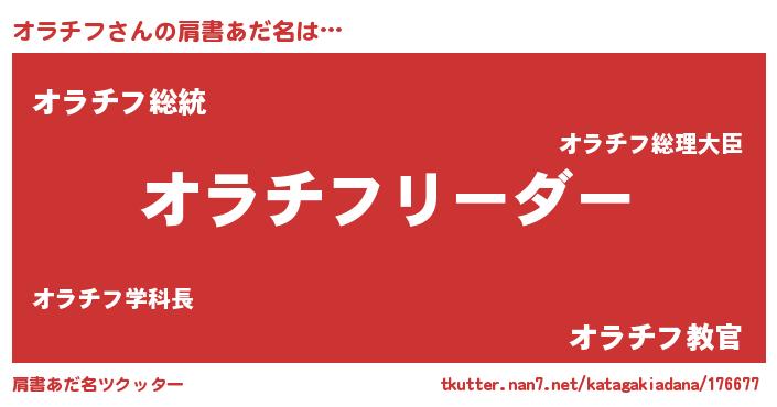 | 女子向けラノベタイトル風あだ名 | 『オラチフ様がみてる』『オラチフ恋絵巻』 |
