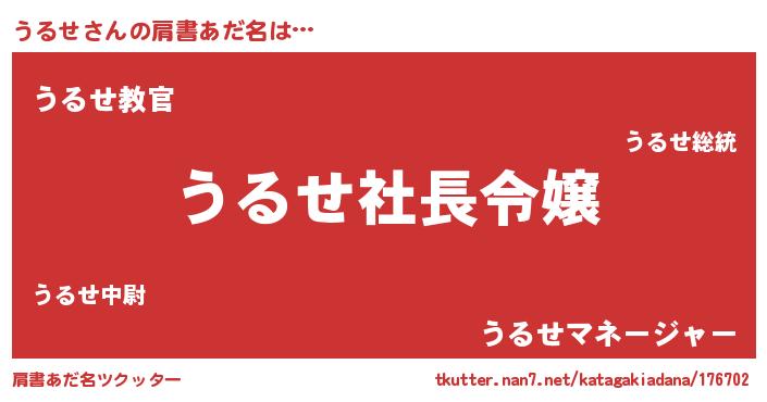 | ヘコむあだ名 | 『うるもー』『つくし』『うるお』 |