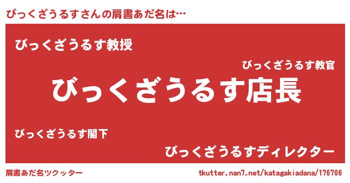 | 男性向けラノベタイトル風あだ名 | 『びっくざうるすの憂鬱』 |