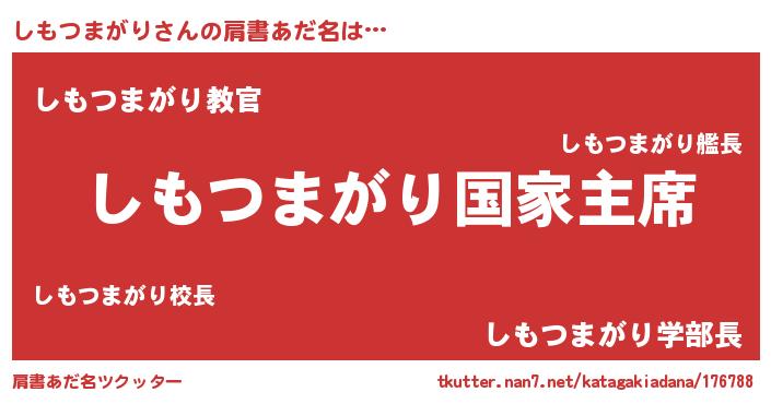 | 意味不明あだ名 | 『しもつまがりフォーエバー』 |