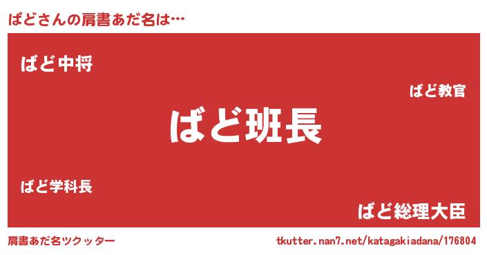 | 意味不明あだ名 | 『とにかく怪しいばど』 |