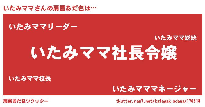 | ヒーロー風カッコイイあだ名 | 『スーパーイタミママ』『暗黒騎士イタ』 |
