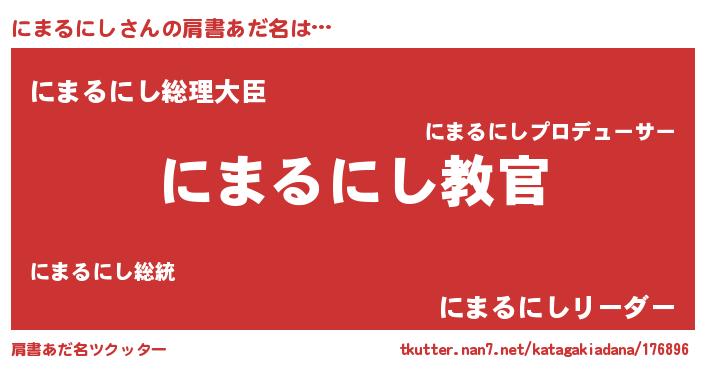 | 男性向けラノベタイトル風あだ名 | 『この素晴らしい世界ににまるにしを!』 |
