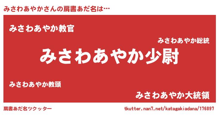 | ヒーロー風カッコイイあだ名 | 『仮面ミサダー』『ネオミサワアヤカ』 |